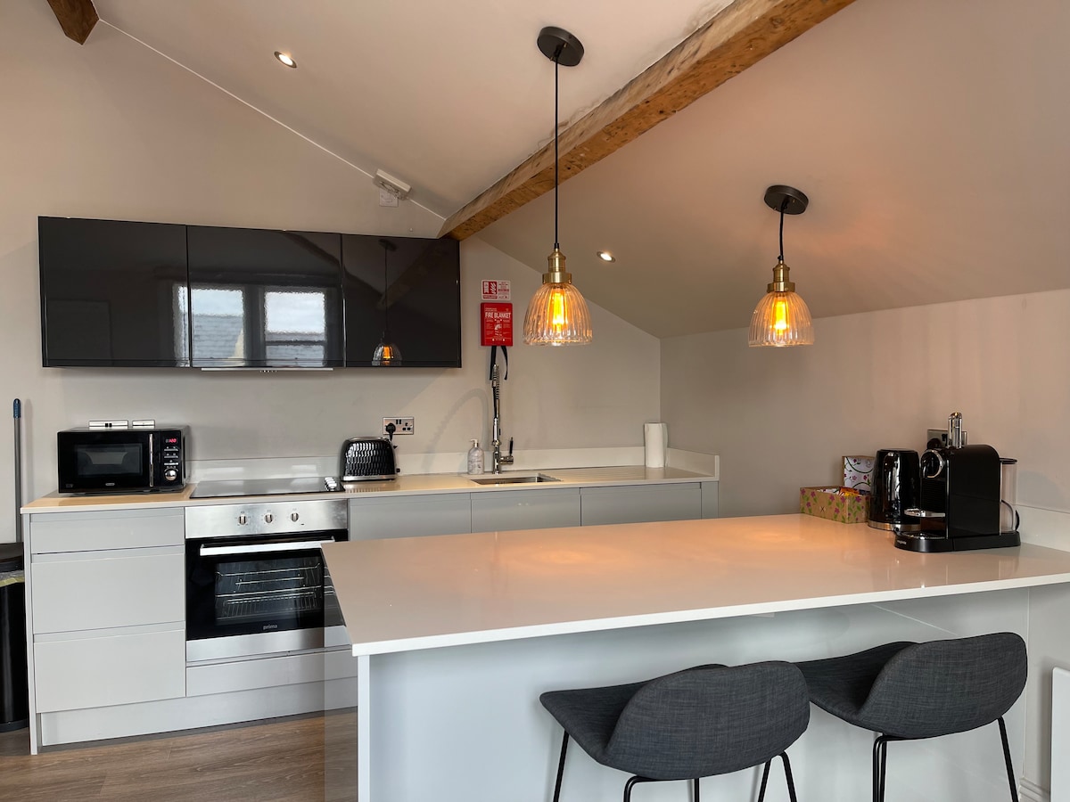 很棒的頂層公寓,有兩間大雙人臥室和兩間淋浴間/浴室。 位於屢獲殊榮的城鎮的中心地帶,如果英國排名前三的居住地。 *注意*房源位於4層區的頂樓,沒有電梯。 請只在喜歡爬樓梯的情況下預訂,值得等待! 我們提供卓越位置的優質服務式公寓。 我們的房源以房客為中心設計,室內設計為核心。