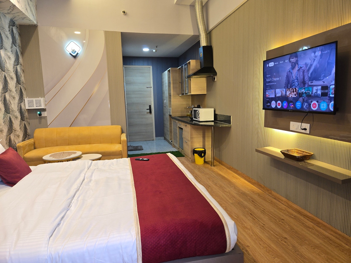 歡迎來到Supernova的Skyview皇室! 這間現代化的單間公寓位於印度最高的混合用途建築之一的39樓,提供俯瞰城市的迷人度假勝地。 可欣賞雅穆納河、日落和閃閃發光的城市燈光,欣賞令人嘆為觀止的全景。 通風良好,早晨陽光充足。 我們的房源非常適合情侶、商務客戶、獨自旅行者或任何尋求寧靜度假的人。