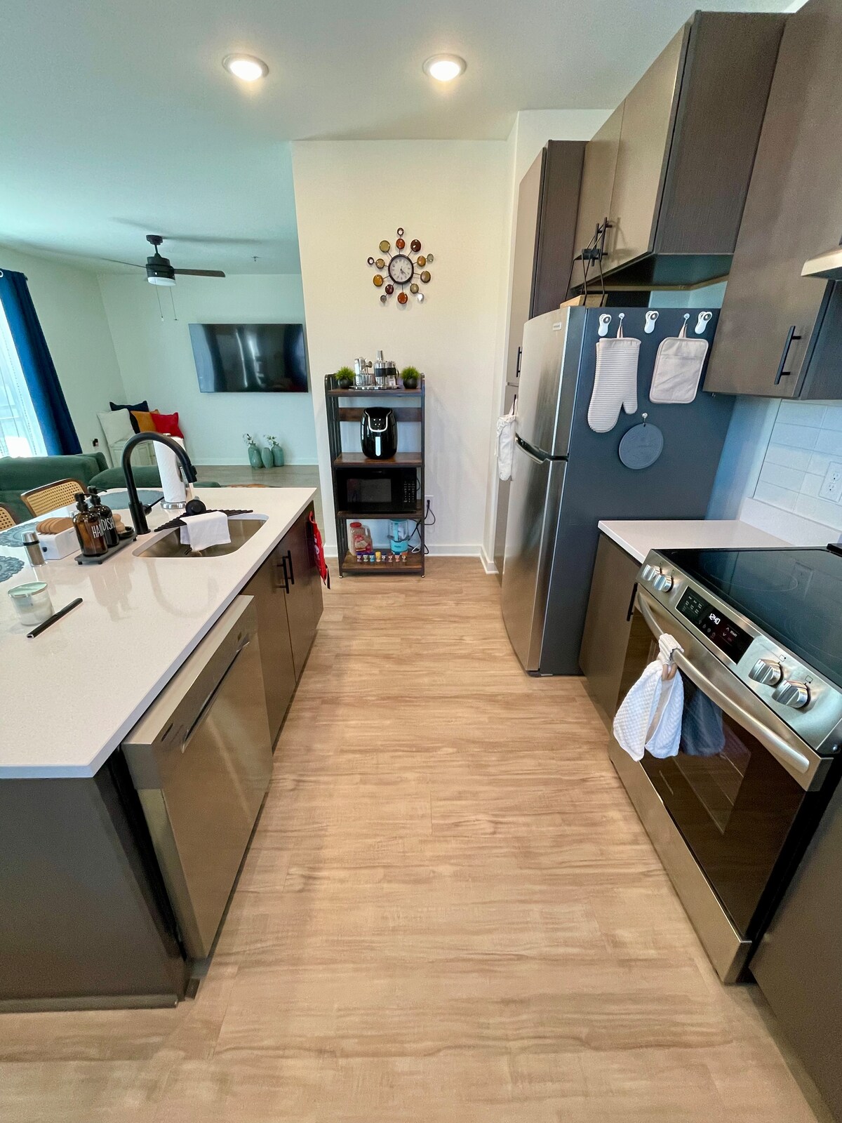 這間時尚寬敞的單臥室單浴室公寓位於市中心,但靠近河邊。房間配有加大雙人床,裝飾精美。配備75英寸電視,讓您在舒適的客廳放鬆身心,享受新鮮爆米花機、任天堂Switch和設備齊全的廚房。步行即可抵達餐廳和酒吧,距離VCU、詹姆斯河、卡里敦和里奇蒙德大部分地區僅幾分鐘路程。