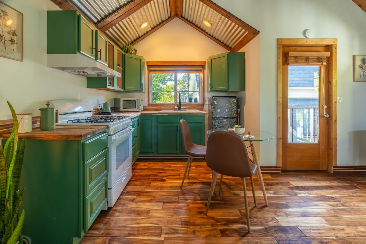 Find your landing place in a botanical boutique nestled on a quiet neighborhood street centrally located near one of Seattle's most sought-after neighborhoods: Ballard. Surrounded by old growth Cedars - a peaceful oasis without the bustling sounds of the city! Stocked with the necessary amenities for relaxing getaways to business trips, including a full kitchen and coffee/tea bar. The Roost is a completely separate unit (no shared walls) located in the backyard of our 1906 farmhouse.