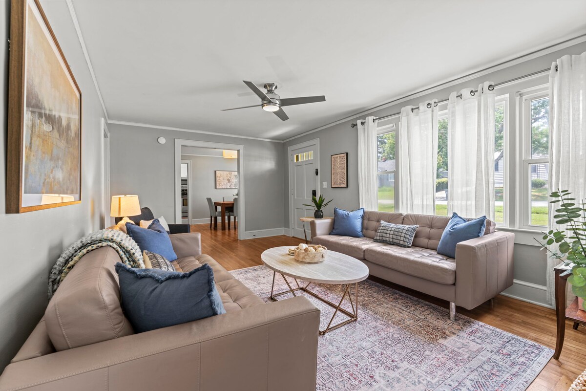 祝您在距離主聖格林維爾1英裏的迷人最新房源住宿愉快! 在前往格林維爾博物館、餐廳、劇院和迷人的Reedy River Falls公園的路上,漫步在歷史悠久的Pinckney區。 可輕鬆前往Swamp Rabbit自行車和步行道,距離即將到來的聯合公園僅4個街區。 房源位於安靜的住宅街道上,有私人車道。 在前門廊的搖椅上放鬆身心,或在大後院的便攜式火坑周圍放鬆身心。