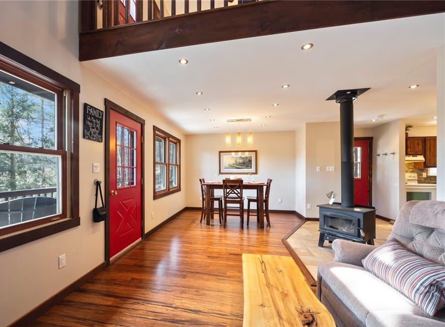 Custom-built year-round retreat in the Frontenac Arch, nestled in the woods—private, quiet, and steps to the lake for canoeing or SUP adventures. Relax on the deck under the stars or soak in the hot tub after a day of adventure. Enjoy vaulted ceilings, soaring windows, a wood stove, outdoor fire pit, custom kitchen, heated floors, rain shower, clawfoot tub, and a bright open layout. 25 mins to Frontenac Provincial Park and 40 mins to Kingston.