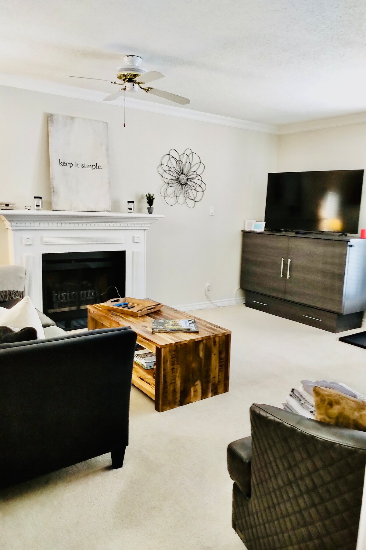 Look no further than this picture perfect blend of farmhouse chic accented with high-end details and furnishing in our luxurious studio chalet which includes a King size bed with a pillow top mattress and cozy fireplace. Located at the base of Blue Mountain's North chairlift and close to many beaches. ***Newly renovated bathroom includes a beautiful glass door walk-in shower***