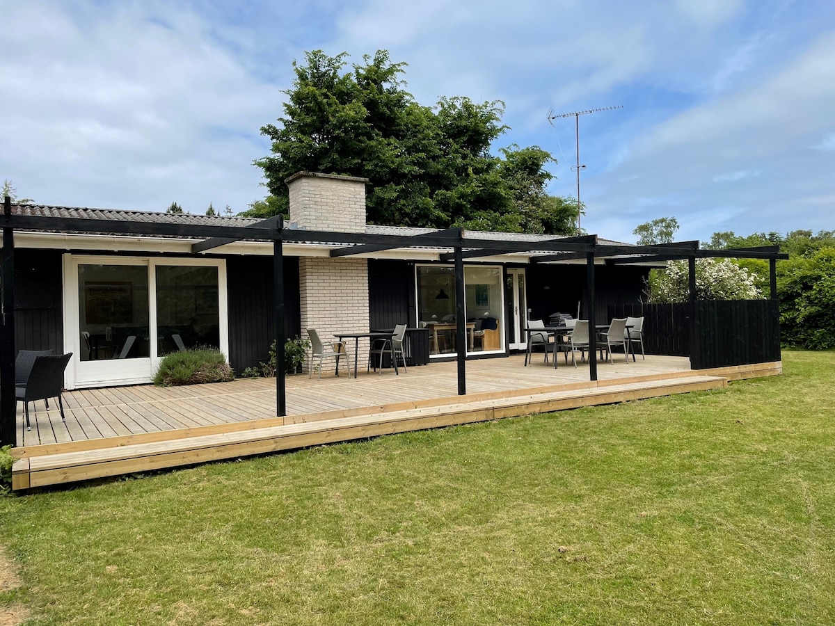 在這個靠近森林的美麗房源中放鬆身心。您有自己的房子,配有門廊、帶用餐區的廚房、浴室、帶壁爐和工作區的大客廳、二樓有兩間配有新床、羽絨被和枕頭的精美房間。露臺有用餐區。 可以在森林中漫步,開車10分鐘,即可抵達Tisvilde、Gilleleje等美麗的北西蘭海灘。開車50分鐘即可抵達哥本哈根。如果您喜歡寧靜和大自然,需要寫作或工作的寧靜,這是理想的地方。