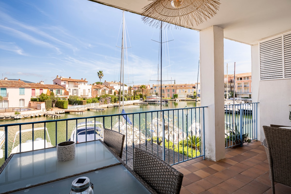 Charmant appartement rénové avec terrasse sur les canaux Entièrement rénové en 2025, ce cocon vous accueille avec une entrée équipée d’un dressing, une salle d’eau et une pièce de vie lumineuse avec cuisine ouverte et coin nuit confortable. Profitez d’une belle terrasse donnant directement sur les canaux, idéale pour un moment de détente au fil de l’eau. Appartement climatisé, accès plage. Navettes en direction de Saint-Tropez / Sainte-Maxime à proximité.