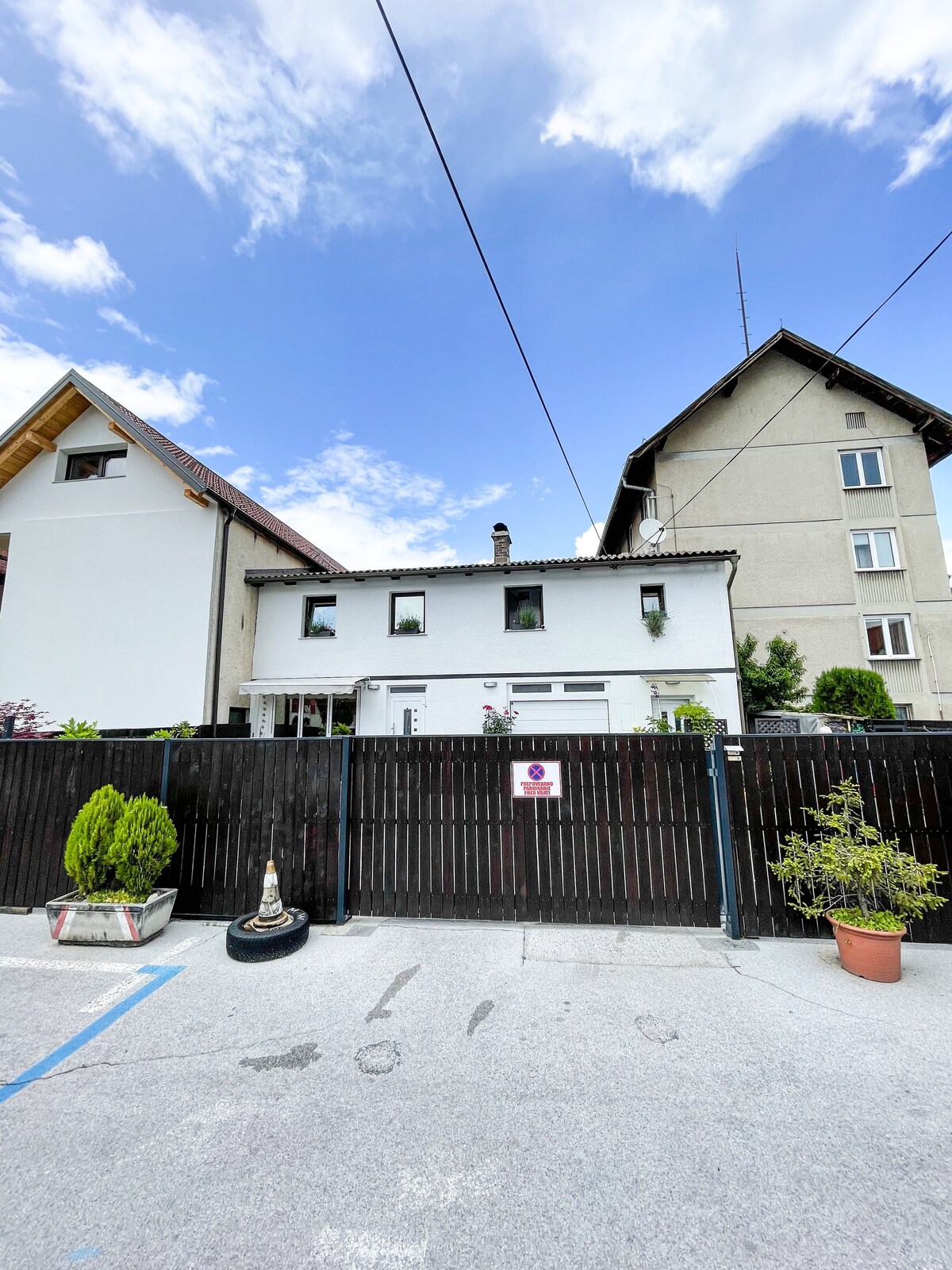 It's a family house. We are a family with 2 kids, living on the first floor, for guests there is fully equipped apartment on a ground floor. New bathroom& kitchen, living room/bedroom with two queen beds, free parking place, separate entrance, easy access, allow pets, fast internet. Terrace, gymnastic bar and trampoline for kids. Place is suitable also for guests on business trips. Location: ca 13 min from Highway exit and 6 min from the city center. Registration number:113690