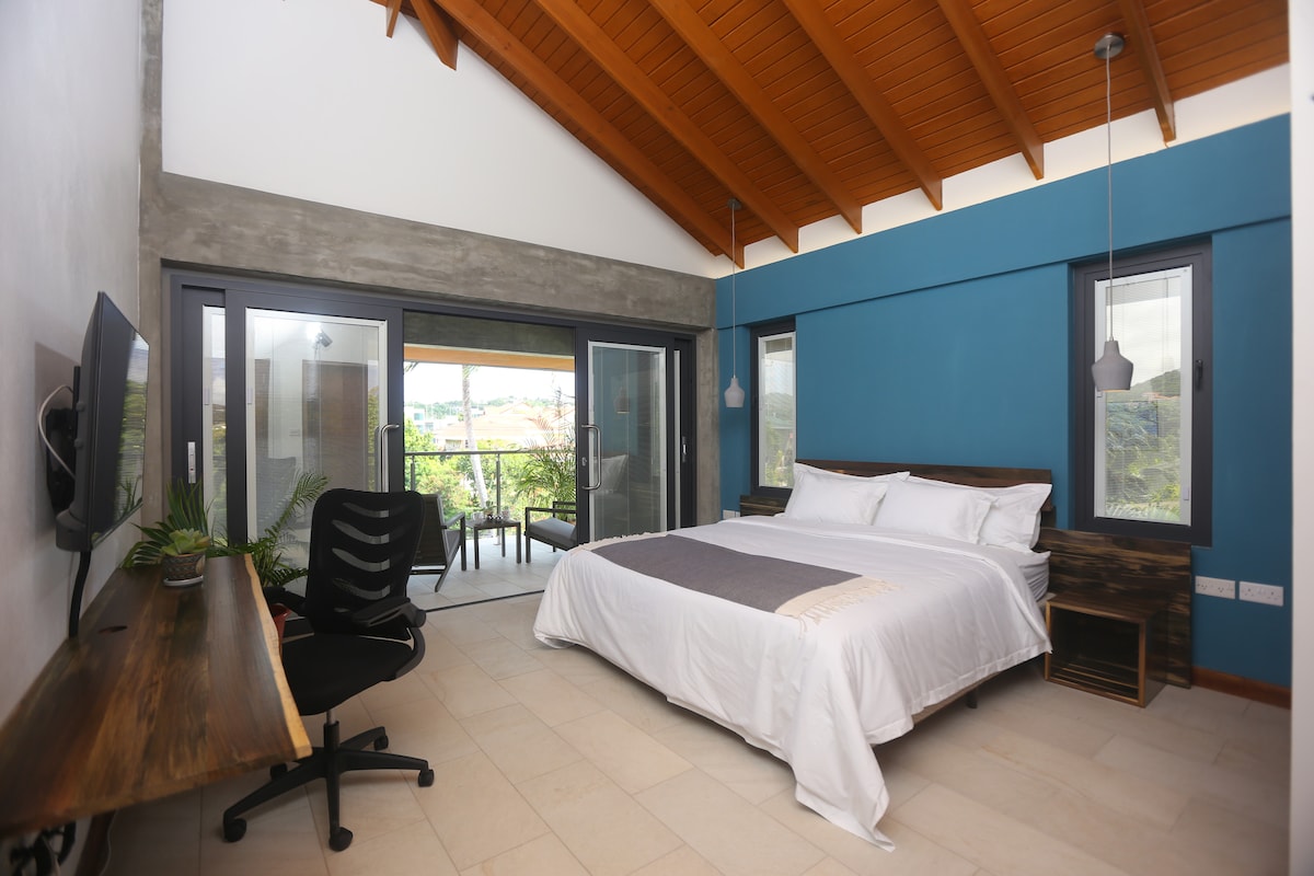 Stay at our aparthotel located in the heart of Rodney Bay. Perfect for persons who want to feel the vibrancy of Gros-Islet. Our open-concept apartment is ideal. This studio is situated on the ground level. There is a common pool on site where guests can swim or unwind at any time. Your accommodation was designed with comfort and functionality in mind, down to the king-sized bed and the assigned work area. Around three o'clock in the afternoon, you can check into your cozy retreat.