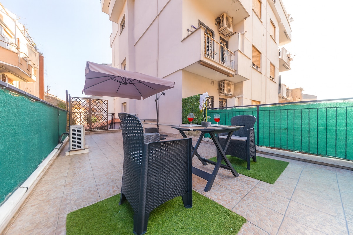 Discover the essence of comfort and modernity in our cozy apartment. Relax on the private terrace or in the stylish bathroom with a spacious shower, while the fully equipped kitchen meets your needs. Just a 3-minute walk from the Re di Roma Metro Station Line A and 7 minutes from Line C, buses and trams, you will easily reach every point of interest. Book your stay now and enjoy a unique experience in Rome!
