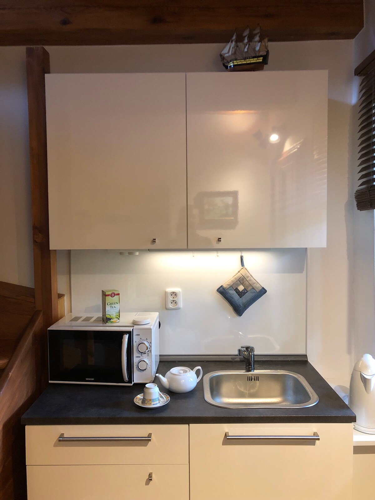 體驗湖面上的浪漫日出,或從近距離觀賞水鳥,如果您想從舒適的床上觀賞:) 湖畔工作室最初是建築師的工作室 - 該建築的作者。工作室的工作功能現在已被娛樂功能所取代,並為您提供了在湖面上方的小空間中體驗卓越建築的機會。在單間公寓的拱形後牆和柔軟的羽絨被中,您會感覺像在舒適的巢穴中:)