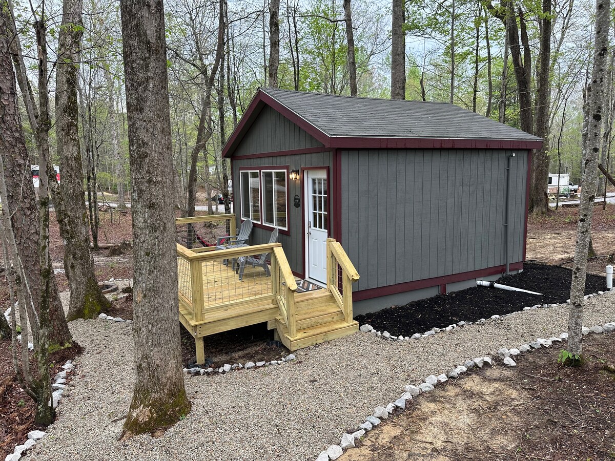 FEATURES A HOT TUB! Relax in style at Sweet Dee's (formerly listed as The Alexander), a luxury tiny home in the Retreat at Deer Lick Falls. Serene, tranquil, rustic, wooded setting with relaxation stations throughout the community. The Retreat at Deer Lick Falls is a gated luxury tiny home community in southeast Tennessee. The community is only 15 minutes from the University of the South in Sewanee. Guests of the Retreat also have access to Retreat at Waters Edge and it's lake.