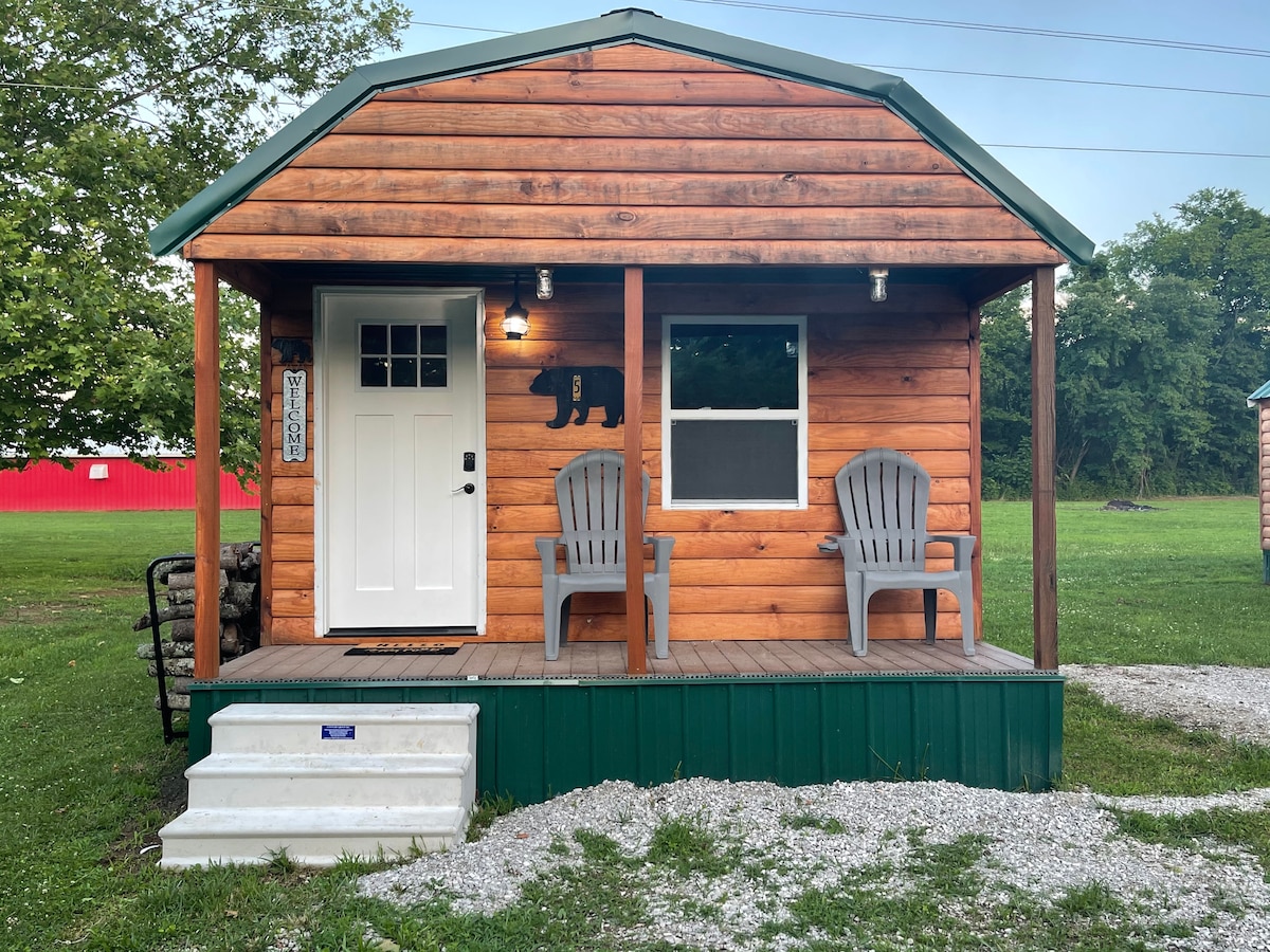 小木屋剛剛翻新,配備了一張新的標準雙人床! 這間可供2人入住的小木屋位於山區2英畝以上的森林中。 在這個區域有無數的登山步道…… Grundy Lakes 就在山下…… 這棟 250 平方英尺的迷你屋在一個大房間內配有小廚房(水槽、微波爐和迷你冰箱)、餐桌和標準雙人床。 浴室配有淋浴間和廁所。 提供 Wi-Fi 連線和露臺。 (入住/退房時間為中部標準時間)The Caverns 就在附近! 沒有服務性動物。不好意思。