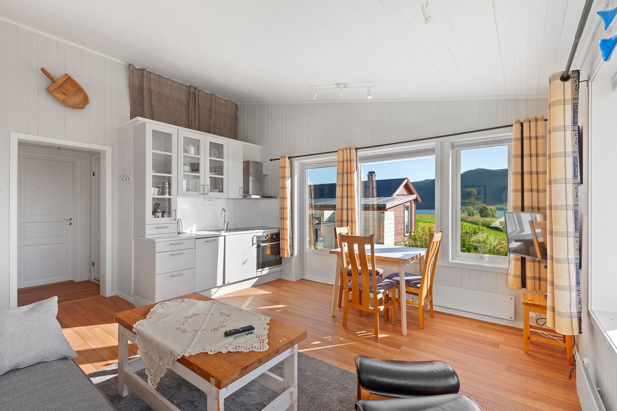 度假屋(2015年)全年可供使用,位於哈德塞爾島(Hadsel island)海邊。靠近僻靜的海灘,面向壯麗的山脈,非常適合徒步旅行、釣魚或在午夜陽光或北極光下悠閒生活。房客可使用燃木桑拿房(額外費用)和兩艘小獨木舟(秋季/冬季不使用)。幾件1960年代的經典設計和精選的個人物品為房子帶來獨特的外觀和氛圍。
