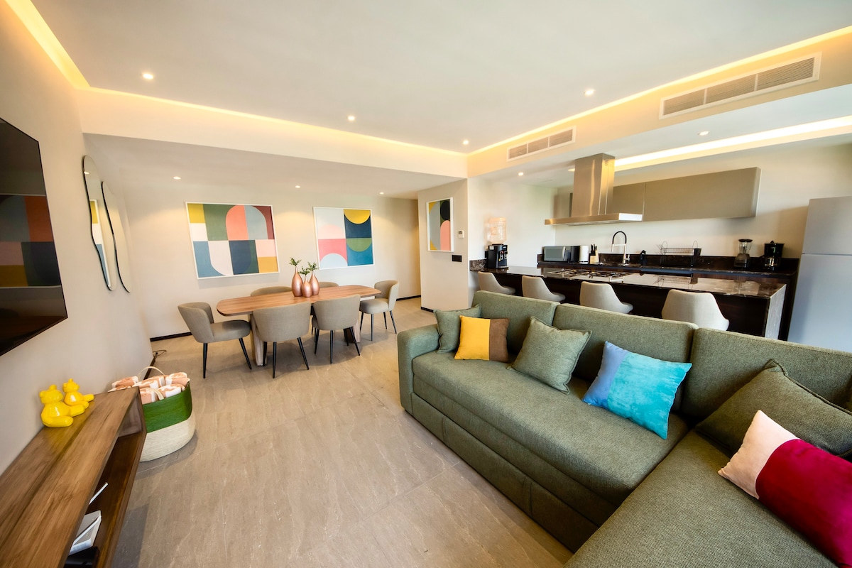 這間豪華公寓位於薩波潘獨特的Valle Real社區,佔地2,500平方英尺(235平方米),坐落在高樓角落,可欣賞無與倫比的全景。 這間客製化的度假屋專為高端旅客設計,提供泳池和 24 小時保安等飯店級設施。 配備600 Mbps Wi-Fi,地理位置優越,靠近Andares Mall和Oracle Campus,是瓜達拉哈拉地鐵區的終極企業家庭基地或富裕家庭度假勝地。 ⸻