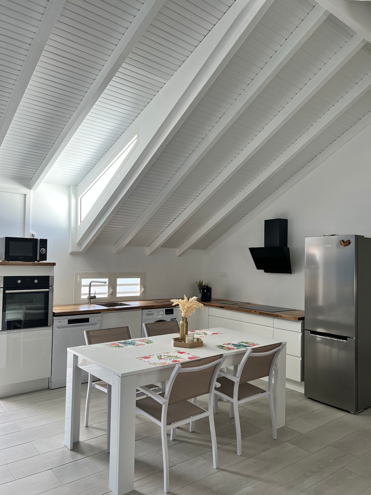 在瓜德羅普島度過一個真正的假期,在寧靜的環境中,美麗的寬敞的單間公寓,現代化,有空調和所有的舒適,由一個大客廳,附帶浴室,廚房配備在懸掛的木製露臺上。 優質的 160 床上用品、床單和毛巾,休閒區和花園,非常適合藝術創作、音樂、閱讀、冥想。 海景,步行即可抵達小港海灘 (Plage de Petit-Havre)。 靠近所有便利設施 私人停車場