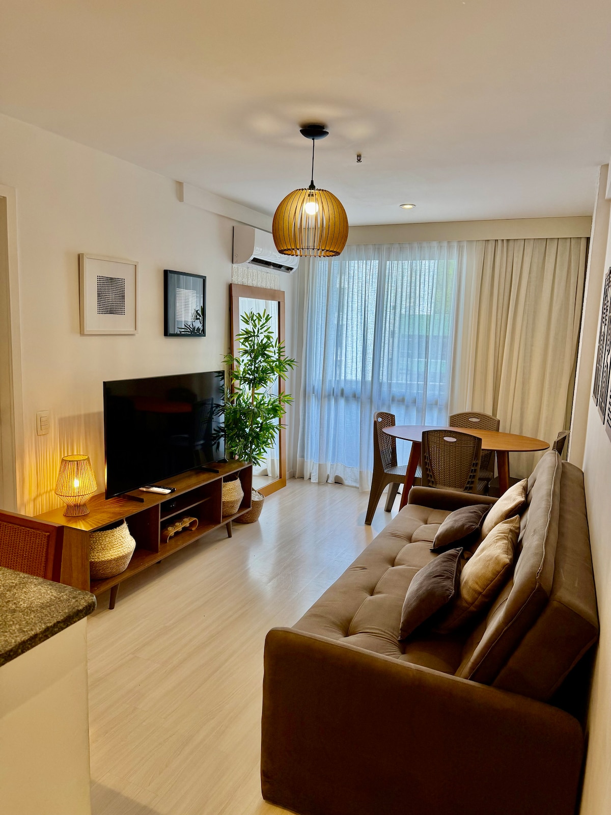 Take a look on this sophisticated aparthotel, designed to offer even more comfort, style and the unique experience of living like a authentic 'Carioca' (those who was born in Rio). Enjoy all the facilities around staying close to the best restaurants, bars, shoppings and local commerce and the amazing green view from the balcony. 24/7 reception desk and daily cleaning. Don't forget to see my reputation (host since 2012 and +450 comments).