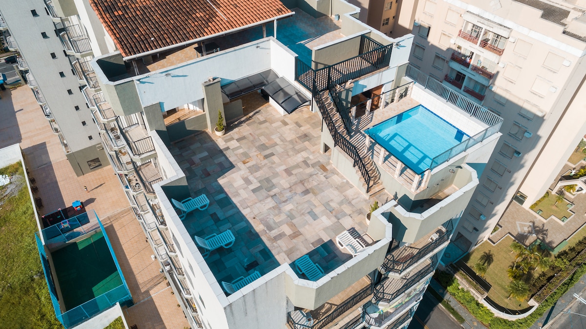 60平方米的全空氣和泳池公寓,非常適合與家人、朋友和寵物一起享受安靜的旅程。 距離Enseada海灘7分鐘,靠近Praia da Pitangueiras。 可免費使用屋頂遊泳池和燒烤、休閒區和兒童遊樂場。 公寓位置優越,位於主要大道上,靠近市場、餐廳、集市和海灘 公寓有: -私人停車位 -廚房用具 -風扇。 -空調。 -無線網絡