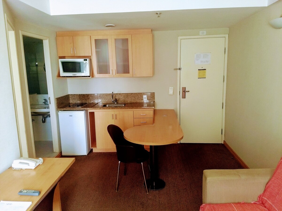 Hospede-se num hotel/flat pagando muito menos do que uma tarifa normal. Permitido usar as comodidades e facilidades do hotel, tais como sauna, academia e piscina. Vaga para automóvel inclusa. Apartamento com uma cama de casal, um sofá, frigobar, TV e banheiro privativo e limpeza diária. The apartment contains one Double beds, a couch,TV, frigobar and the private bathroom. Flat services are included (daily clean-up). The flat have a restaurant, gym and pool. It's located at Guarulhos downtown.