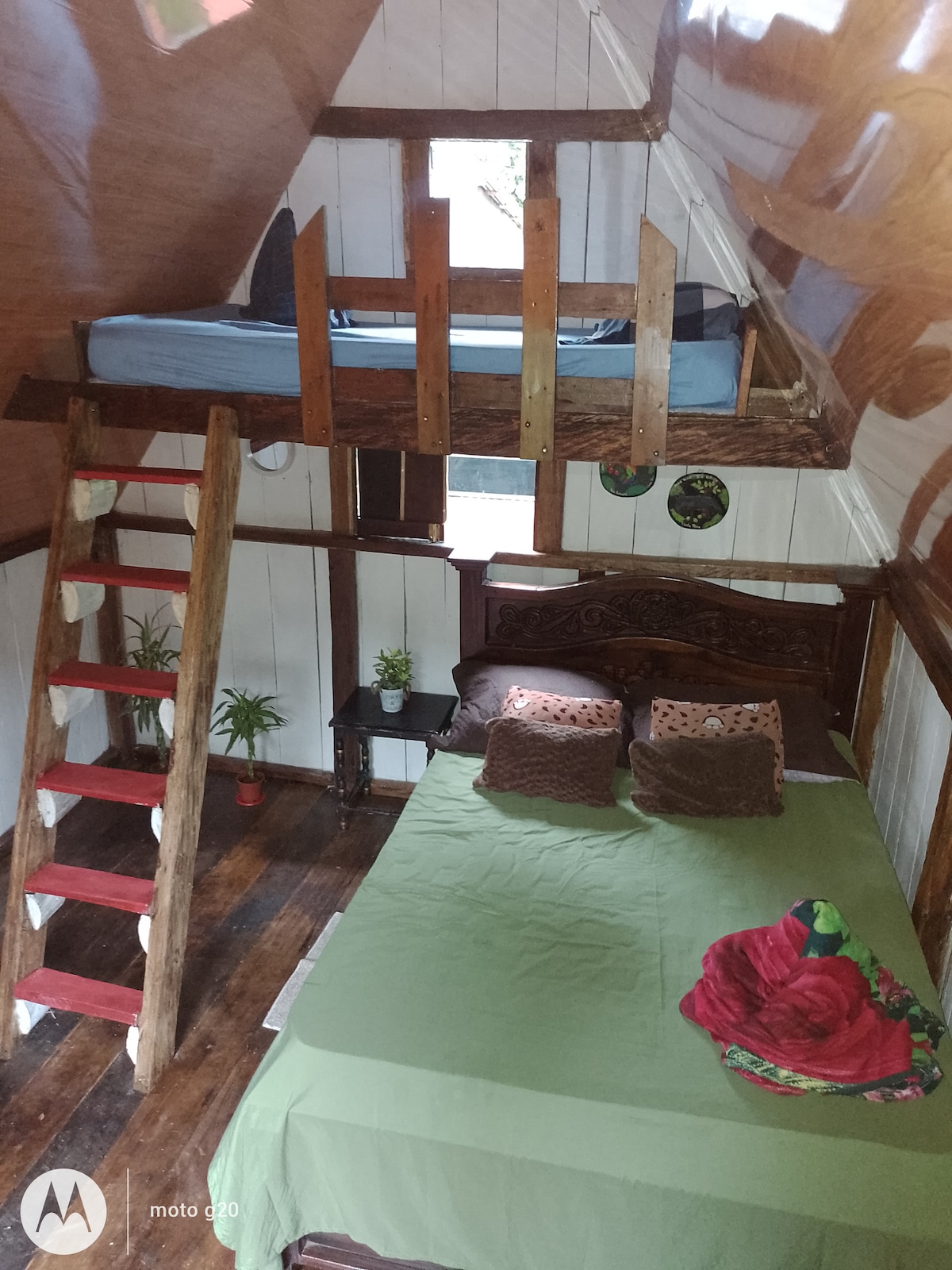 Cabaña是一個安靜的地方,位於特諾裏奧火山旁邊的次要森林中心,您可以在這裡找到樹懶、鳥類和蛙。 有兩間房間,一間配有加大雙人牀,一間配有兩張獨立牀、一間浴室和一間設備齊全的廚房。 不包含早餐,但如果客戶想要並要求提供早餐,則可以出售,則由農產品製成。 我們位於聖米格爾-比阿瓜( Bijagua )的農村地區,通往該鎮的道路鋪好了,狀況良好。