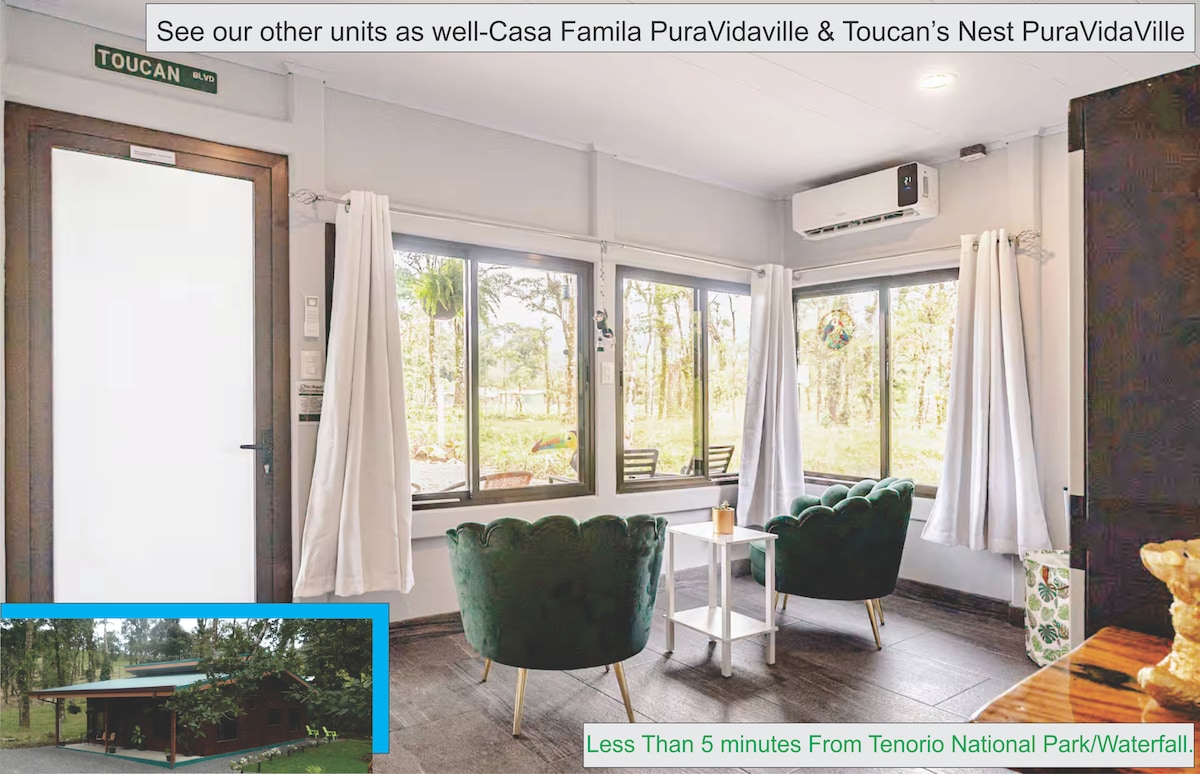 ⭐️ “The Blue House is an escape into nature like I’ve never experienced.” 🌸 A private staircase leads you to the blue waters of Rio Celeste. Soak in the refreshing river, then warm up by the fire. Spot the toucans from the patio. 💙 Private Rio Celeste access ❄️ AC in every room 🪴 360° covered patio 🚗 Onsite, secure parking for 3 vehicles 🔥 fire pit with rainforest view ☕️ Fully equipped kitchen 🦥 Safe + quiet neighborhood ✈️ 1 hr 40 min drive from LIR international airport (LIR)