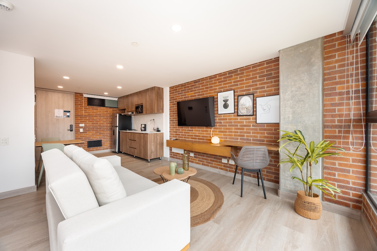 美麗的新公寓,位於El Poblado街區,位於麥德林最獨特的地區之一。 它有一個寬敞的房間、舒適的客廳和一個俯瞰山脈的大陽臺。 這個空間非常酷,提供高速WiFi服務。廚房設備齊全,並配有洗衣機和烘乾機塔。 大樓提供壯觀的共用工作空間,提供餐廳服務、寬敞的露臺和設備齊全的新健身房。