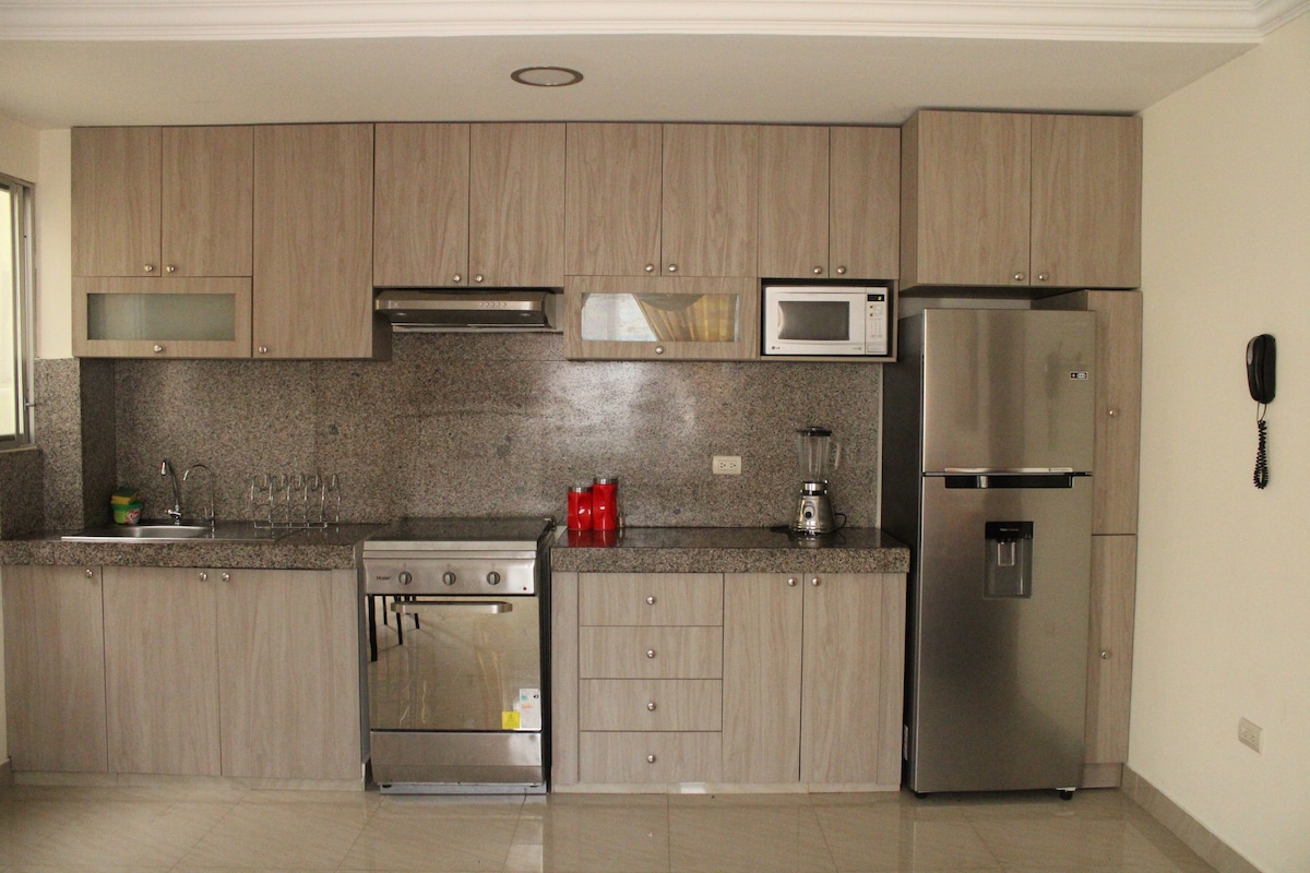 舒適、有趣、美麗、安全、公平、實用、價格合理,地理位置優越,靠近商場、餐廳、健身房、醫院、交通工具等。這間套房將為您帶來豪華酒店的感覺,提供您在瓜亞基爾住宿所需的一切,讓您的住宿體驗令人難忘,歡迎隨時歡迎您的到來……