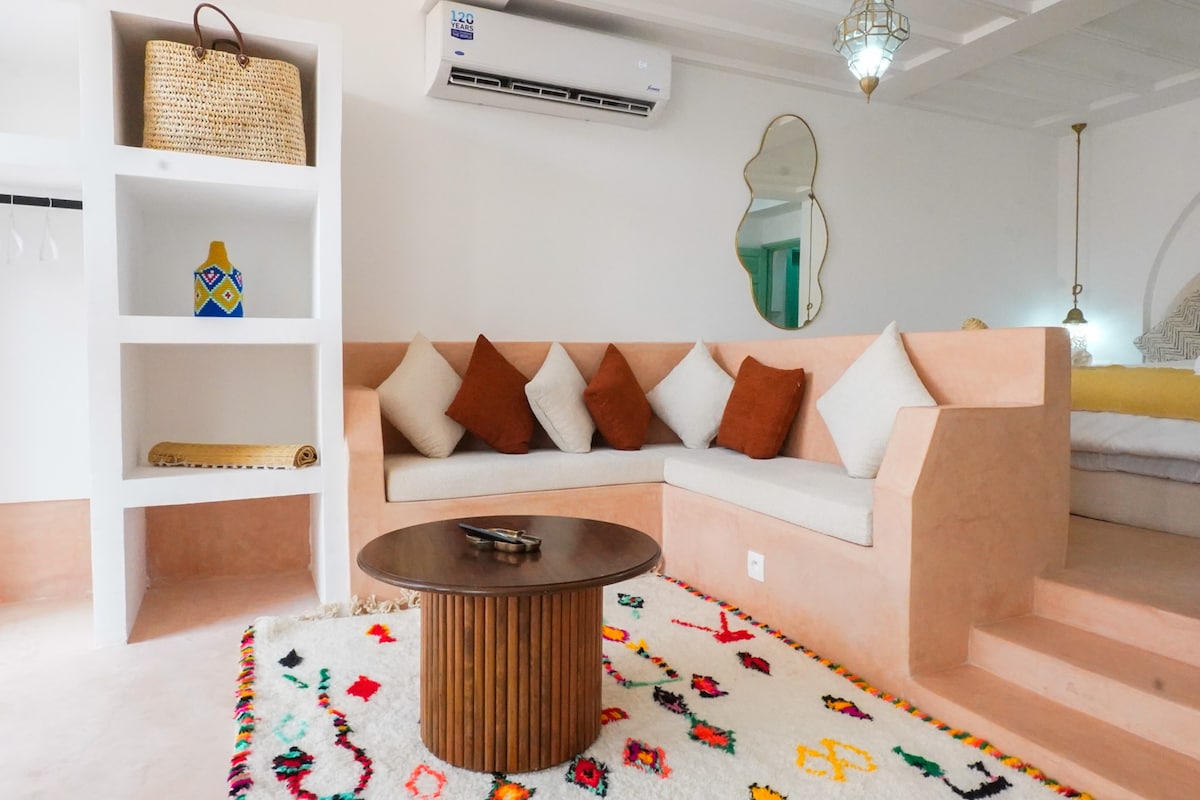 探索這間位於 Guéliz 中心的波西米亞現代公寓,步行即可輕鬆前往城市的最佳景點。配備齊全的廚房、迎賓用品、床單和毛巾。客廳配有 Netflix、光纖和 IboTV 播放器,可觀看多種頻道。舒適的臥室,配有Kinédorsale床墊和大型儲物空間。享受寬敞的露台與鞦韆。非常適合正宗舒適的馬拉喀什體驗。 附註:未婚摩洛哥夫婦不得入住。