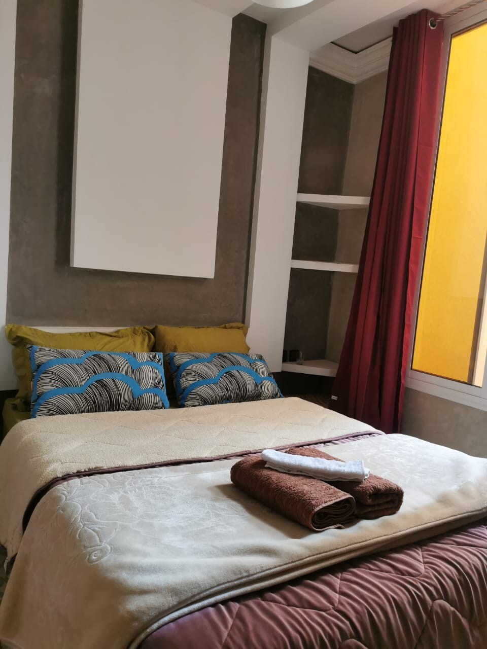 Un appartement au rez-de-chaussée ayant une superficie de 100 m .qui contient 2 chambre 2 salle de bain un salon une cuisine et un (URL HIDDEN) petit jardin devant la maison. Style Tadlakt et arcade qui donne à l appartement un charme traditionnel .qui se situe dans un endroit paisible proche de la mer.