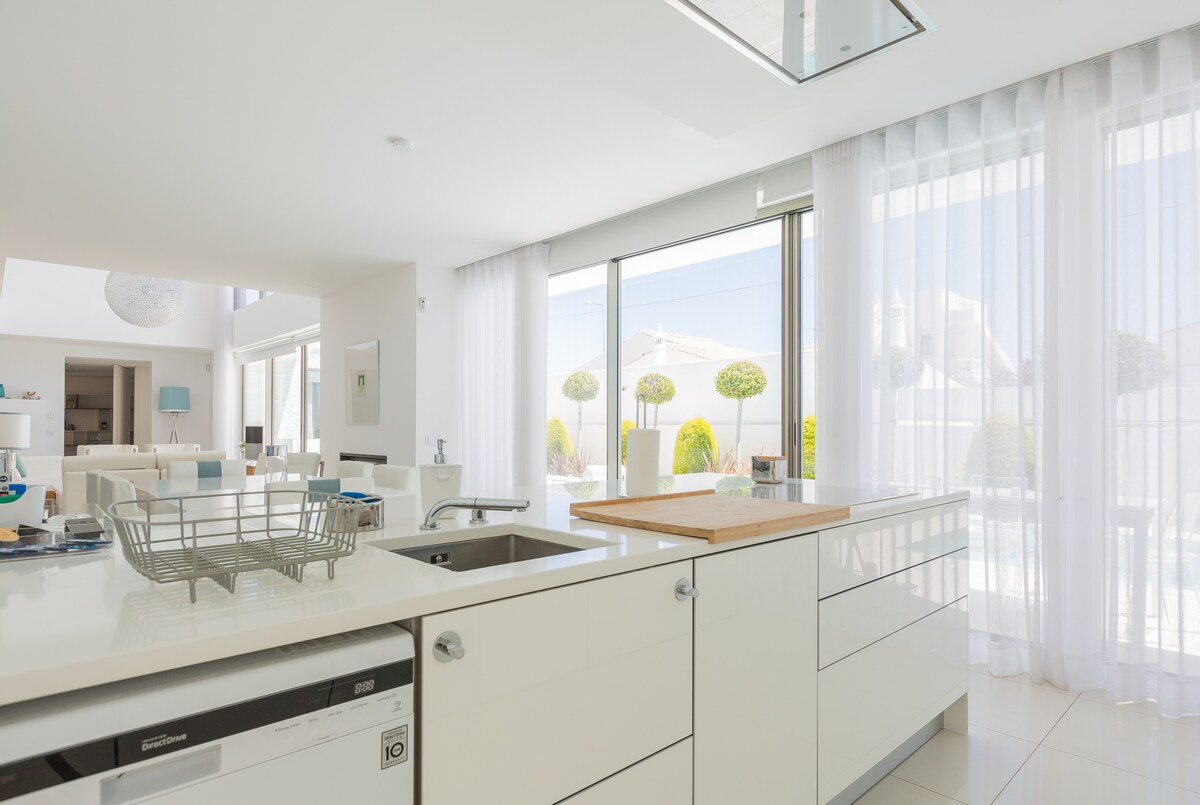 現代風格的4間臥室加上辦公室,配有暖氣地板、泳池和車庫,位於阿爾布費拉的加萊別墅。 地理位置優越,靠近超市、酒吧、餐廳,距離海灘和高爾夫球場10分鐘。 ** 6月至9月不適用月租折扣**