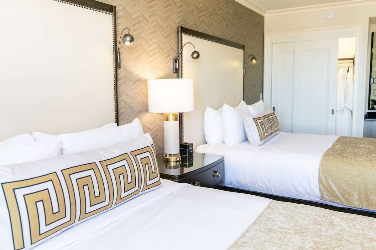 Surrounded by lush resort grounds, this stylish room is perfect for family or friends exploring Greensboro. Two plush queen beds and a spacious layout offer comfort and ease. Enjoy elevated amenities like a wet bar and flat-screen TV after a day of spa or sightseeing.