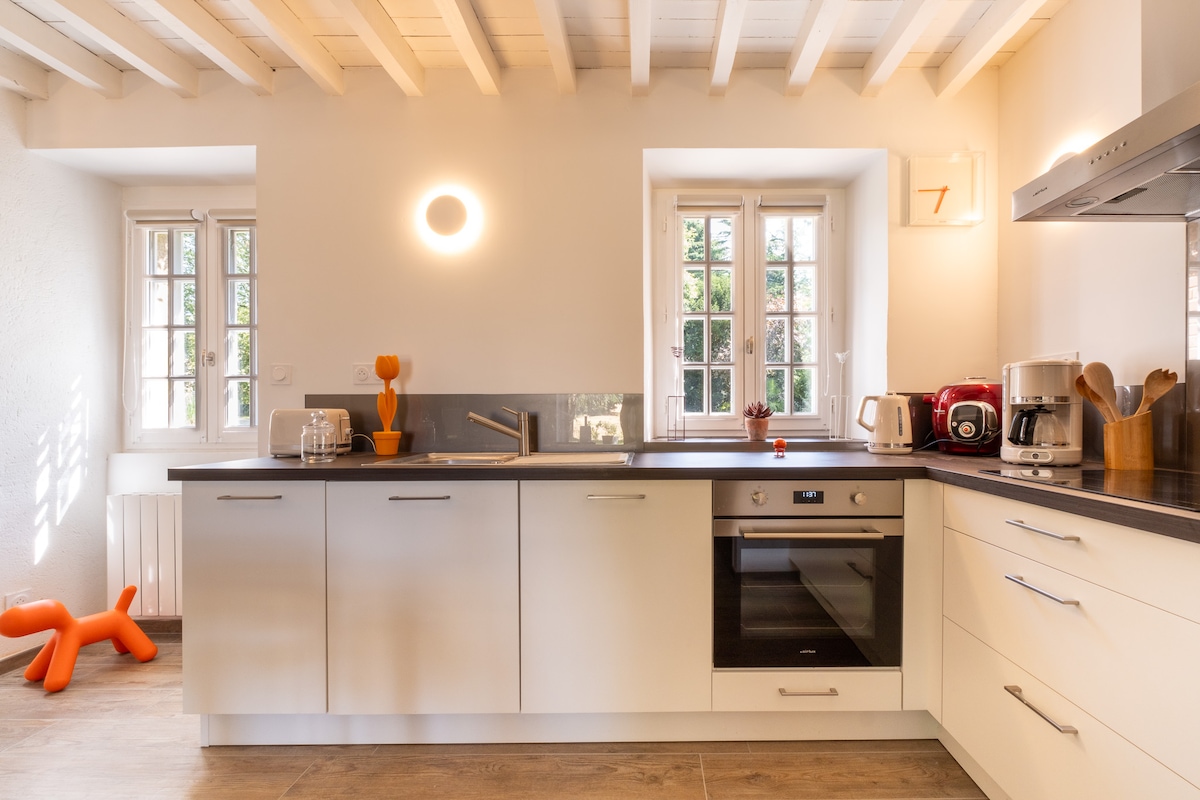 Le petit déjeuner est offert pour bien commencer votre journée. Profitez pleinement de votre séjour ! Ancienne bâtisse de 1802 entièrement rénovée et nichée au cœur d'un paysage pittoresque, un séjour ici vous offre tranquillité et sérénité (maison entière et parc totalement privatifs). Profitez d'un intérieur chaleureux et accueillant.