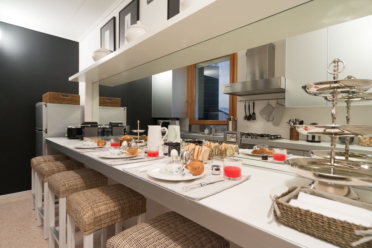美麗的臥室,有獨立衛浴和獨立入口,有安全門。 步行不到5分鐘即可抵達羅馬廣場或火車站。 它位於大樓二樓,有高天花板,有外露的樑和木地板。 設備和家具都是新的、舒適和現代化的。 明亮透氣的房間俯瞰典型的威尼斯庭院。 從1570年到今天,每個星期天上午10: 30,格里高利聖歌和香水會進入房子。沒有空調。
