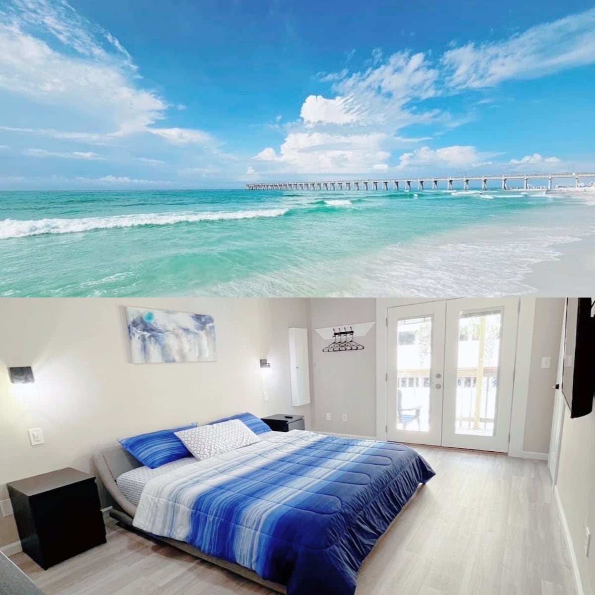 NO EXTRA FEES AFTER BOOKING! Wake up to Gulf views from your PRIVATE BEACHFRONT BALCONY in this charming, low-rise condo. Step directly onto sugar-white sand and emerald waters just outside your door. Enjoy a year-round, seasonally heated pool with an easy walk to Pier Park for dining, shopping, attractions, and nightlife. Looking for different dates or layout? I own 5 condos in this building. Click my host profile, then scroll down to view all of my listings.🌴