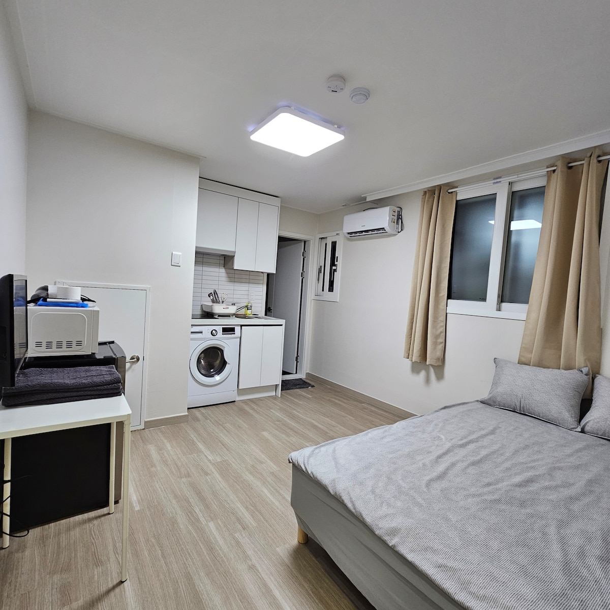 [感覺很好的一天,感覺很好的住宿] 這是一間舒適的6坪單間公寓式住宿,是一間客用住房,陽光明媚。 (這是一個有獨立衛浴的房間。) 大樓二樓有共用空間,配有廚房、洗衣機和烘乾機:) 我👀喜歡這個! 無障礙設施與服務相關問題: 🚇永登浦市場站3分鐘,永登浦站8分鐘 ▶️附近的設施:時代廣場、美食街、便利商店等。 ▶️舒適溫暖:獨立地暖、溫暖、全熱水 乾淨度:每次都更換寢具、消毒、由專業清潔公司仔細清潔 🎈Gocheok Dome Bus直達15分鐘 距🎈 離弘益大學站 11 分鐘 步行 5-6 分鐘即可抵達🎈時代廣場