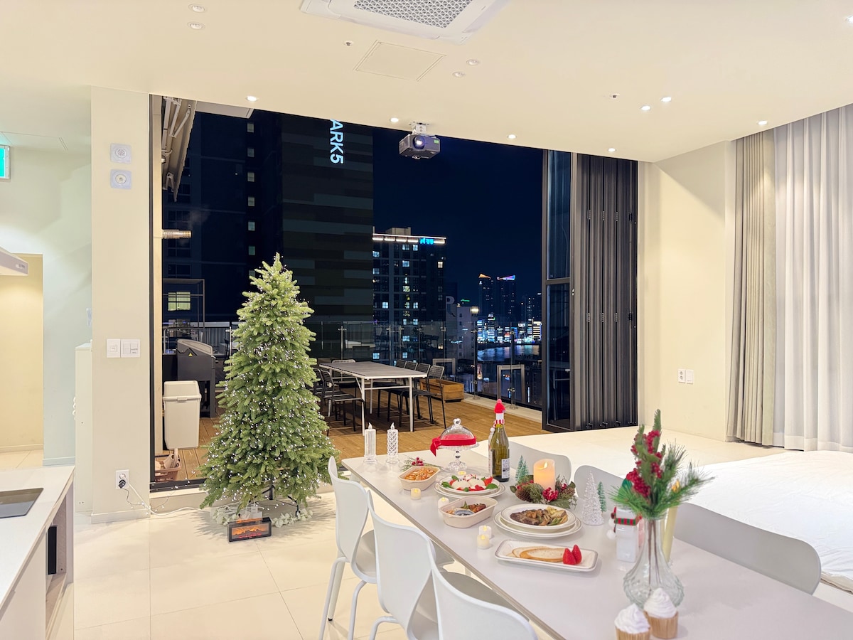 [新春開張優惠] /聖誕樹/安靜/提供簡單早餐/按摩浴缸/提供一瓶葡萄酒/光安大橋景觀