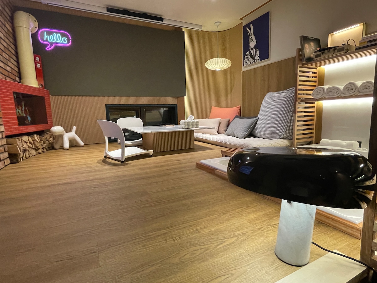 🦆 데구르르 오리호텔: [도쿄의 작은 이자카야, 영화속에 빠지다.] “서울에서 일부러 내려왔어요” 한 번 다녀간 사람은 꼭 다시 찾는 곳. SNS 입소문만으로 예약이 마감되는 광주의 감성숙소, 오리호텔입니다. 25평 규모의 2층 단독주택 전체를 리모델링한 이곳은 일상을 벗어나 오직 ‘쉼’에 집중할 수 있는 공간이에요. 🍿 우리만의 영화관, 집 안에서 즐기는 시네마 데이 프라이빗하게 꾸며진 홈시네마룸에서 오늘의 영화 한 편. 고급 빔프로젝터와 사운드 시스템이 완비되어 있어 프라이빗 영화관 완성 🍶 이자카야 분위기 그대로, ‘요리보다 분위기’인 주방 고급스러운 우드 톤과 감성 조명이 조화를 이루는 주방은 마치 도쿄 뒷골목의 이자카야에 들어온 듯한 기분. 간단한 요리는 물론, 분위기마저 요리해드립니다. 🛏 숙면을 부르는 아늑한 침실 2개 따뜻한 감성 톤의 침실 2곳, 오직 당신의 편안한 밤을 위해 설계했습니다.
