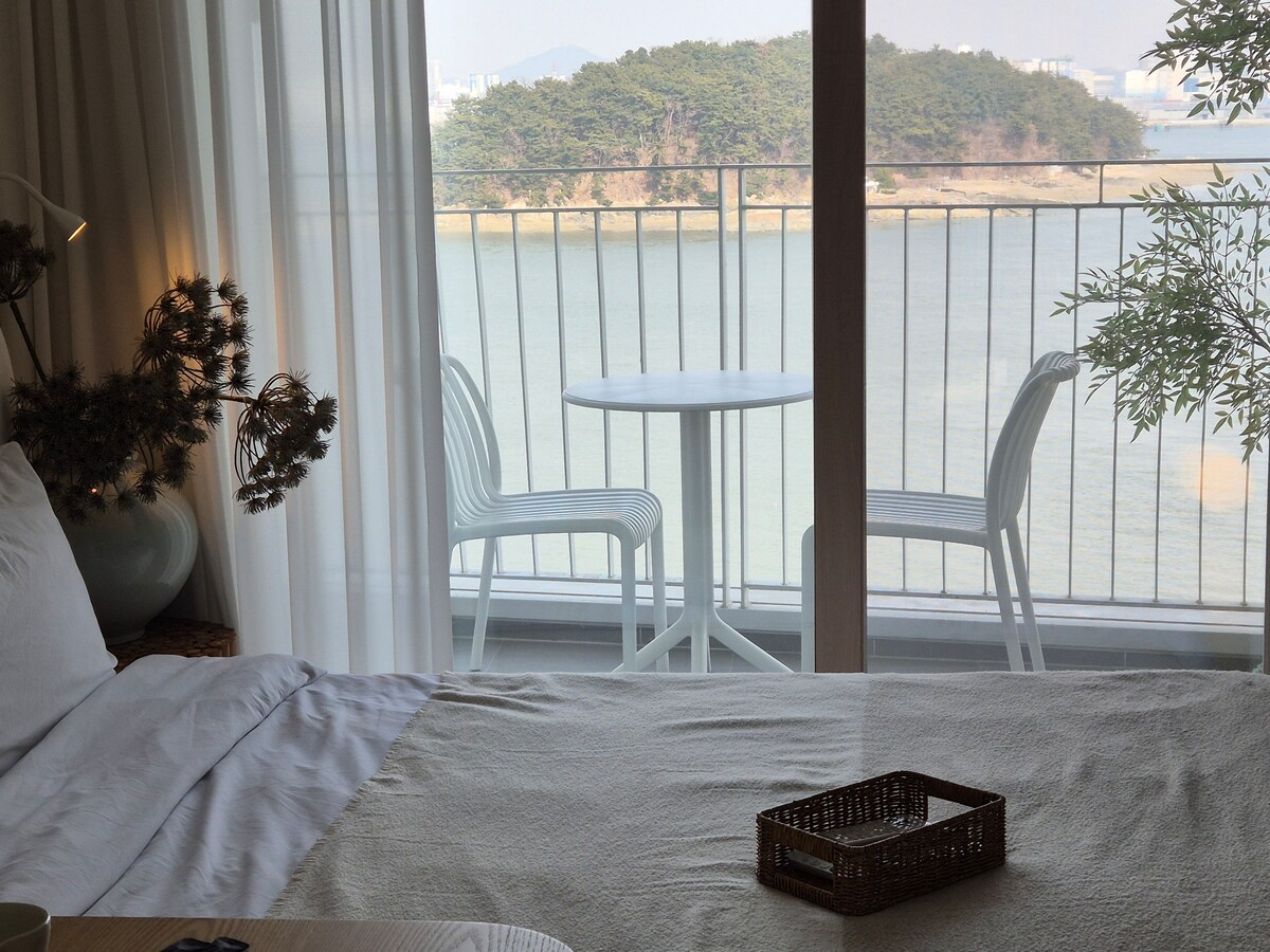 俯瞰大海和公園的高樓層, 從兩側涼爽穿透的窗戶可欣賞海景, 寬敞通風的住宅大型複式單間公寓, 藤製室內情緒住宿:) ▪️雙面窗戶海景,公園景觀 ▪️複式公寓,高天花板,涼爽開放 開車20分鐘即可抵達▪️仁川機場 ▪️Gueup Batter 2公裏6-7分鐘車程 ▪️Netflix 最多▪️可供8人入住 使用▪️時間 -入住時間:下午4點 -退房時間:上午11: 00 *提前入住/延遲退房需要額外收費和時間安排,因此請提前與我們聯絡。 不可▪️攜帶寵物 ▪️室內絕對禁止吸煙 ▪️禁止燒烤五花肉,禁止烘烤肉類/魚類/蝦子,禁止烹煮有強烈氣味的梅雲湯/螃蟹湯等。 ▪️停車位(免費1輛車) - B1棟~ B4/停車場-住宿連接(超過2輛車需額外收費)