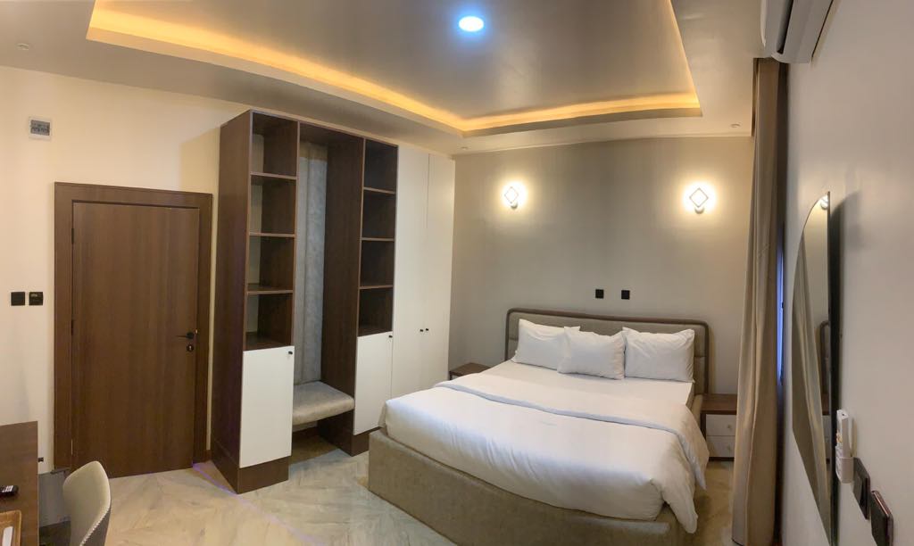 🗸Complimentary breakfast, welcome drink and premium bottled water 🗸Plush bed with crisp linens 🗸In-room safe 🗸Convenient bedside charging & nightstands 🗸High-speed Wi-Fi 🗸Enhanced bathroom amenities {Bathrobe and luxury slippers} 🗸Access to indoor hotel, bar and shared lounge 🗸Minutes from the city centre, major freeways, and the airport 🗸Close to Abuja National Mosque, National Christian Centre, Yar’Adua Centre, art venues, and Jabi Lake Mall 🗸Children under 13 stay free. Book Now!