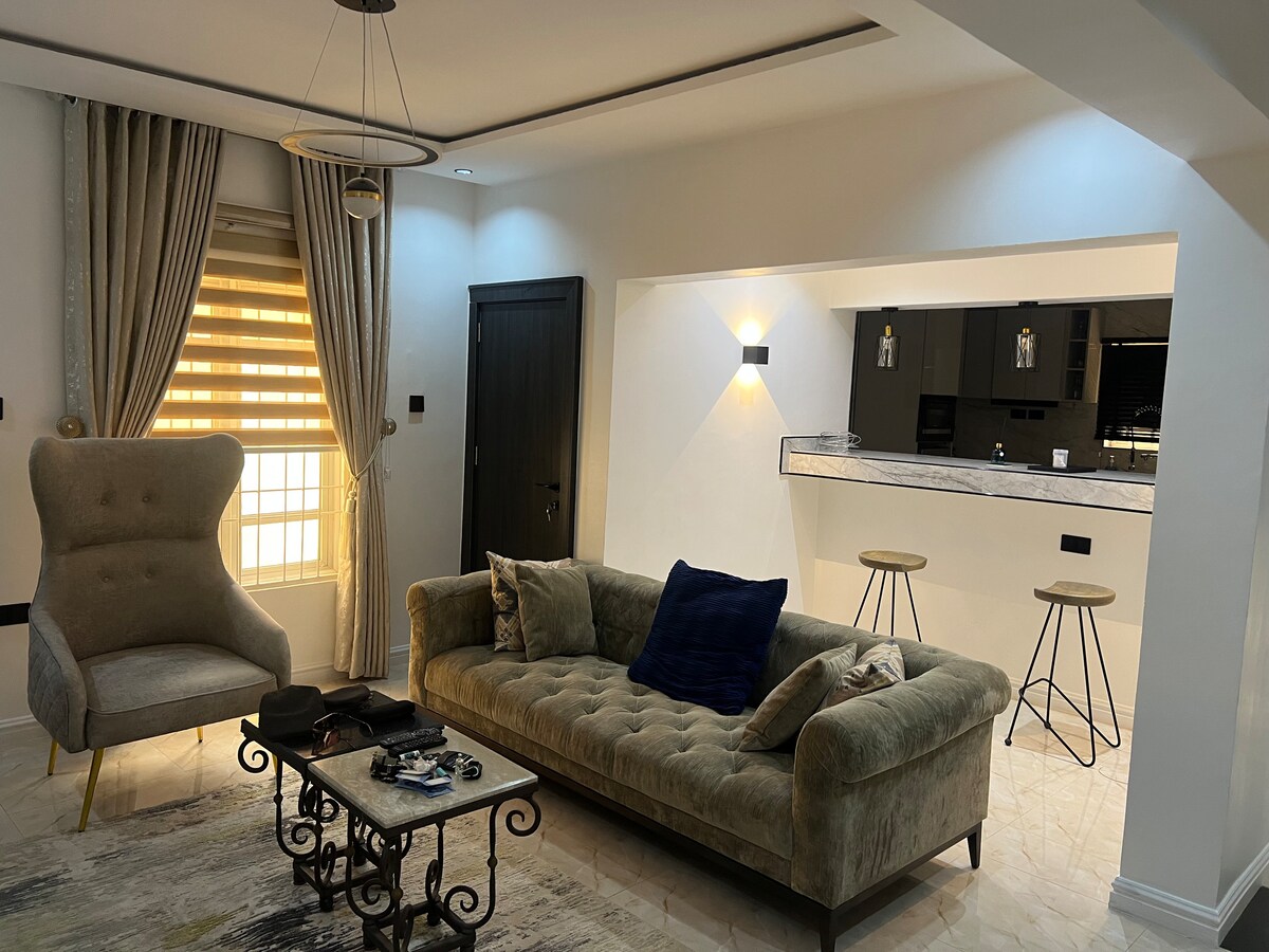 歡迎入住您在阿布賈的舒適單臥室、1.5間浴室出租。 非常適合商務或休閒,提供放鬆的閱讀空間、兒童友善的功能和現代化的舒適性。 享受附近的餐廳、商場和充滿活力的城市生活。 Jabi Lake 開車一小段路就能到,有著海灘氛圍和戶外樂趣。 聯邦首都區中心的時尚度假勝地。