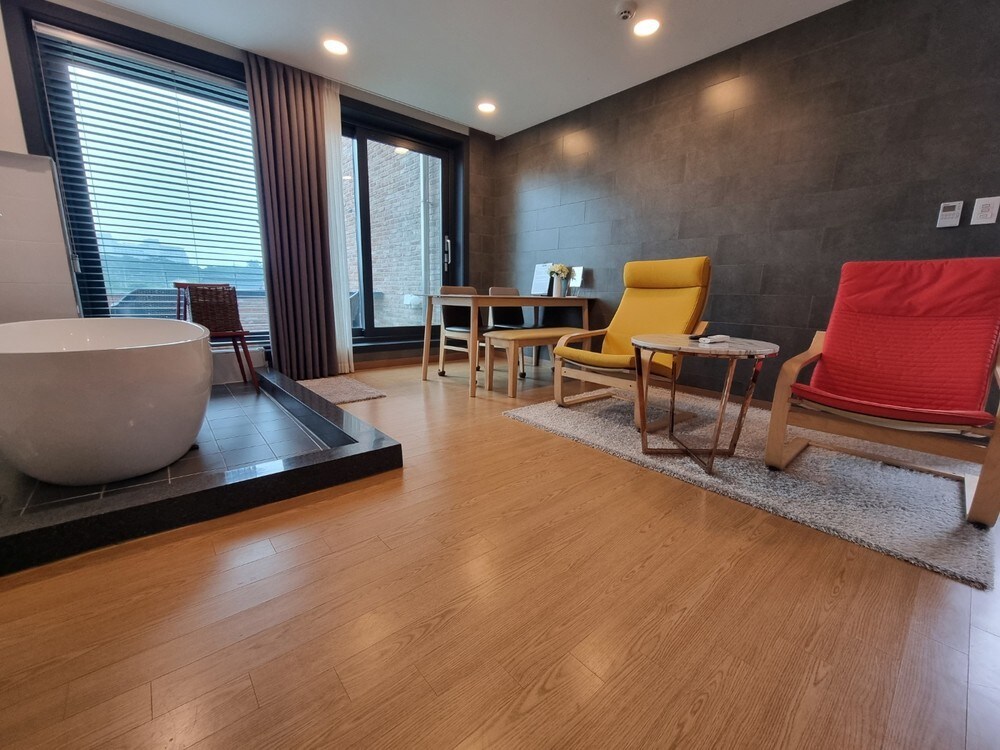 ์๋ ํ์ธ์. ์ ํฌ๋ ๋ค์ํ ํด์ ๊ณต๊ฐ์ ์ฐ๊ตฌํ๊ณ ์ ๊ณตํ๋ Onda์ ๋๋ค. ์ด ๊ณณ์์ ๋จธ๋ฌด๋ฅด์ค ๋ชจ๋ ๋ถ๋ค๊ป์ ํธ์ํ๊ณ ํ๋ณตํ ์๊ฐ์ ๋ณด๋ด์๊ธธ ๋ฐ๋๋๋ค. [์์ ์๊ฐ] ๋ปฅ ๋ซ๋ฆฐ ํต์ ๋ฆฌ์ฐฝ์ผ๋ก ๋ณด์ด๋ ์ฃผ๋ณ ๊ฒฝ๊ด์ด ํธ์ํจ์ ์๊ฒจ์ฃผ๋ ๊ฐ๋ฆ ๊ฒฝํฌํด๋ณ ์ธ๊ทผ์ ์์นํ ํ์ ์ ๋๋ค. ๋ชจ๋ํ๋ฉด์๋ ์ธ๋ จ๋ ์ธํ ๋ฆฌ์ดํ์์ผ๋ฉฐ ํ์ ๋ด์ ์๋ฆฌ๋ฒ ์ดํฐ๊ฐ ์ค์น๋์ด ์์ด ํธ์ํ๊ฒ ๊ฐ์ค๋ก ์ด๋ ํ ์ ์์ต๋๋ค. [๊ฐ์ค ์ ํ] ๋ณต์ธตํ ( ๊ฑฐ์ค ๊ฒธ ์ฃผ๋ฐฉ + ๋ณต์ธต์นจ๋๋ฃธ + ํ์ฅ์ค ) / 15ํ(์ฝ50ใก)