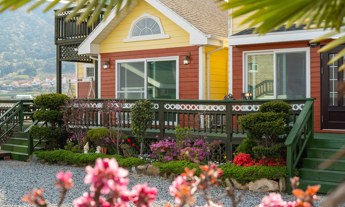Soho Mul Flower Hostel 位於Soho-dong Sojae村的上方 是第一家使用環保材料設計的 這是第一個獨立的民宿。 土地面積165坪,室內面積32坪,公寓大小,露臺30坪,草坪。 在膳宿公寓的前面,如湖泊般平靜的小湖前海和遊艇一覽無遺,膳宿公寓的左右兩側,安心山和四方山的藍色森林與大自然融為一體。 環保的柏樹是高天花板和牆壁,地板是杉樹,室內舒適,由太陽能和地熱供暖。 大多數入住我們房源的房客都是大家庭,即三代人。 有草坪,非常適合孩子們玩耍。 民宿附近有Diocean度假村和U World 滑車主題公園, 夜景和燈光美麗的東東橋 非常適合與家人和戀人散步。 您可以在房源迎接日出 Soho海的露珠和日落。夜晚的海 欣賞美景。