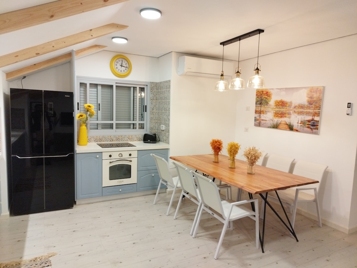 這是基布茲公寓的二樓,是一個平靜安靜的地方,早晨可以聽到鳥兒的鳴聲。 有一層獨立入口樓層,新裝修的樓層,配有大陽臺, 周圍有寬敞、整潔的花園房屋。 免費停車,有帶雙人牀的臥室 公寓的二樓, 它位於Kibbutz Negba ,一個非常安靜的地方,大花園,免費停車,獨立入口
