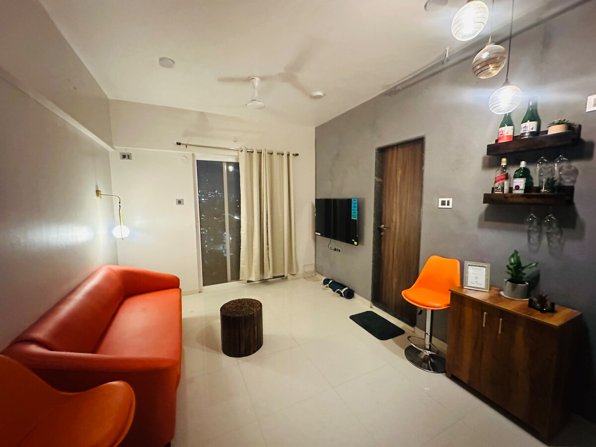 Stylish Top-Floor Stay | 2-Min Walk to Pune Airport Enjoy a peaceful & luxurious experience in this beautifully designed apartment with stunning interiors, balcony view of flights, rooftop pool, gym & more. Perfect for couples & travelers. A rare gem just 300m from Pune Airport! Relax in a stylish, well-equipped apartment just 2 mins from Pune Airport. Enjoy a king-size bed, 55" Smart TV with Google Assistant, and fast Wi-Fi.