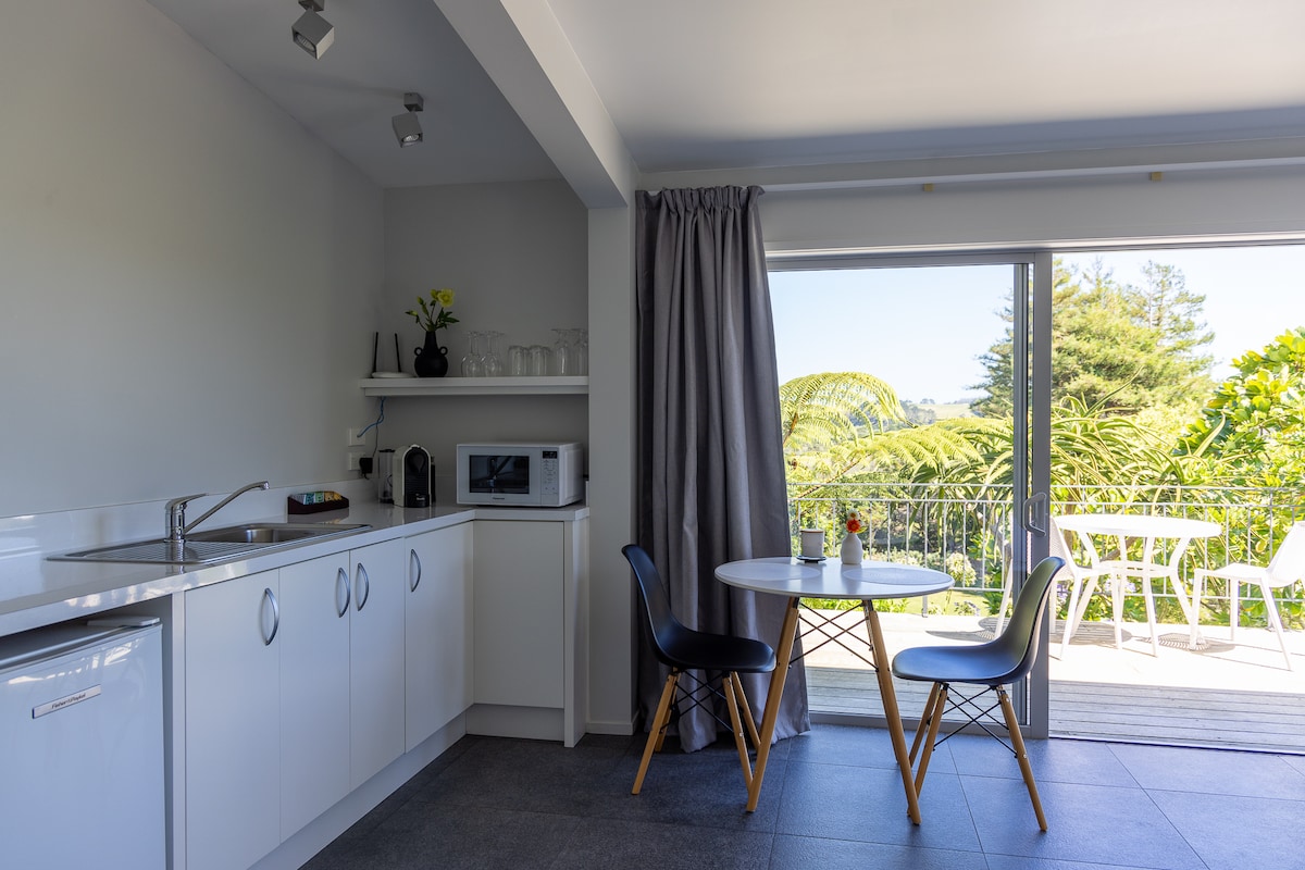 這間令人愉悅的私人公寓配有套房和小廚房,可欣賞熱水海灘(Hot Water Beach)的美景和華麗的日落。在水療池中放鬆身心,欣賞海灘的美景。提供水療浴袍 享有完全的隱私,有自己的入口可以隨意進出。 我的房客都說:「2晚不夠-真希望我們能住得更久!」 位於私人道路上,如果您正在尋找安靜的度假勝地,遠離 遠離交通和人群,這可能是您的完美去處! !