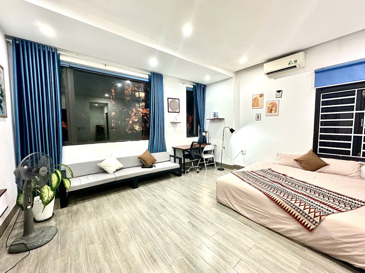 This spacious and cozy apartment is located in the heart of Da Nang, just 300m from the Han River and is surrounded by a quiet, calm neighborhood. Fully equipped with all the necessary amenities, the apartment offers everything you need for a comfortable stay. It is also close to a gym, restaurants, eateries, and entertainment spots, making it easy to explore the local cuisine and enjoy the vibrant activities of the city.
