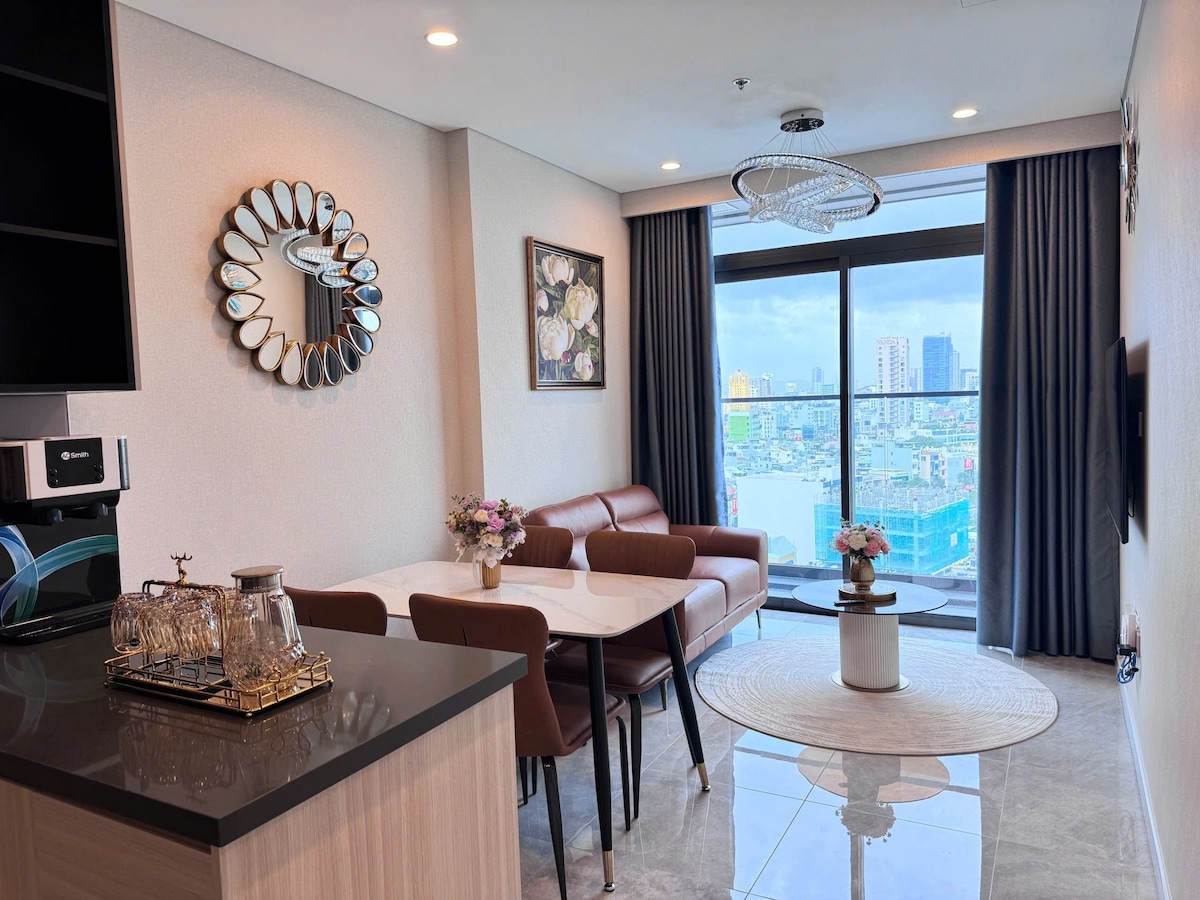 歡迎來到你的完美岘港度假勝地! 這間時尚的 2 臥室公寓位於充滿活力的市中心,距離漢江、商店和娛樂設施僅幾步之遙。 從高樓層,從房間和陽臺欣賞日落景觀。 從臥室或私人陽臺上拉開窗簾,醒來欣賞壯麗的海上日出。 在泳池放鬆身心,欣賞日落,享受舒適、便利和海邊的罕見度假勝地。