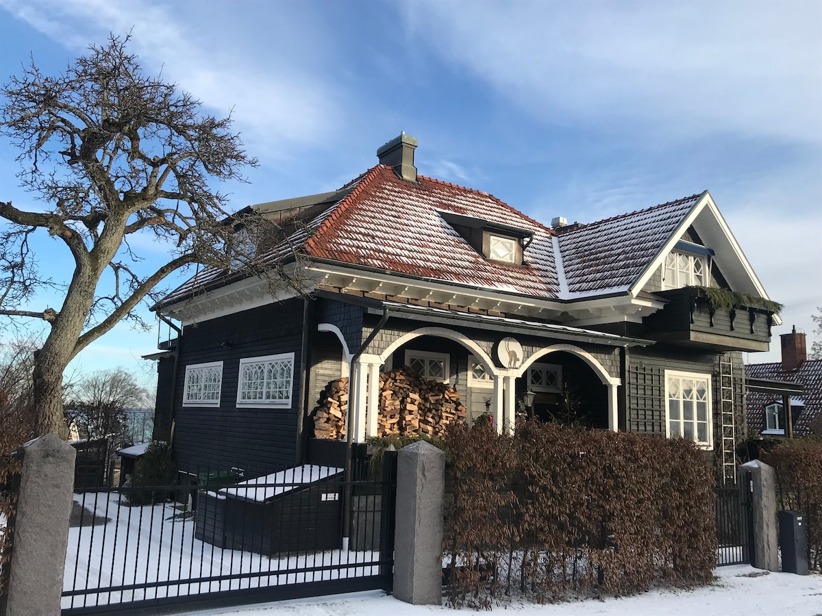 一切都近在咫尺! 新翻修的中央地下室公寓,與房東位於同一棟房子。 步行 5 分鐘即可抵達市中心,那裡有很多餐廳、戶外座位和商店。 步行1分鐘即可抵達Steel bom糕點店。 每天供應簡單的菜餚和豐富的自助早餐。 開車8分鐘即可抵達Falkenberg最大、最好的海灘Skrea Strand ,騎自行車約15分鐘。 步行 10 分鐘即可抵達 Ån Ätran 和 Vallarna,有漂亮的綠地和步行路徑。