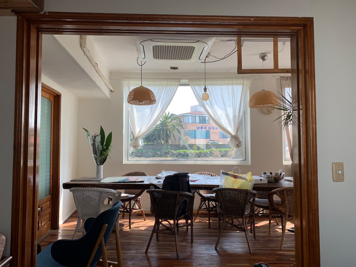JEJU_I 膳宿公寓位於一個安靜的村莊,以★美麗的日落和風車而聞名。 我們夫妻住在一樓,二樓和三樓專為房客準備。 共有2間情侶房和1間家庭房,花園和屋頂都可以舒適使用! 離開市中心,在鄉村村莊中感受濟州的療癒感 ><