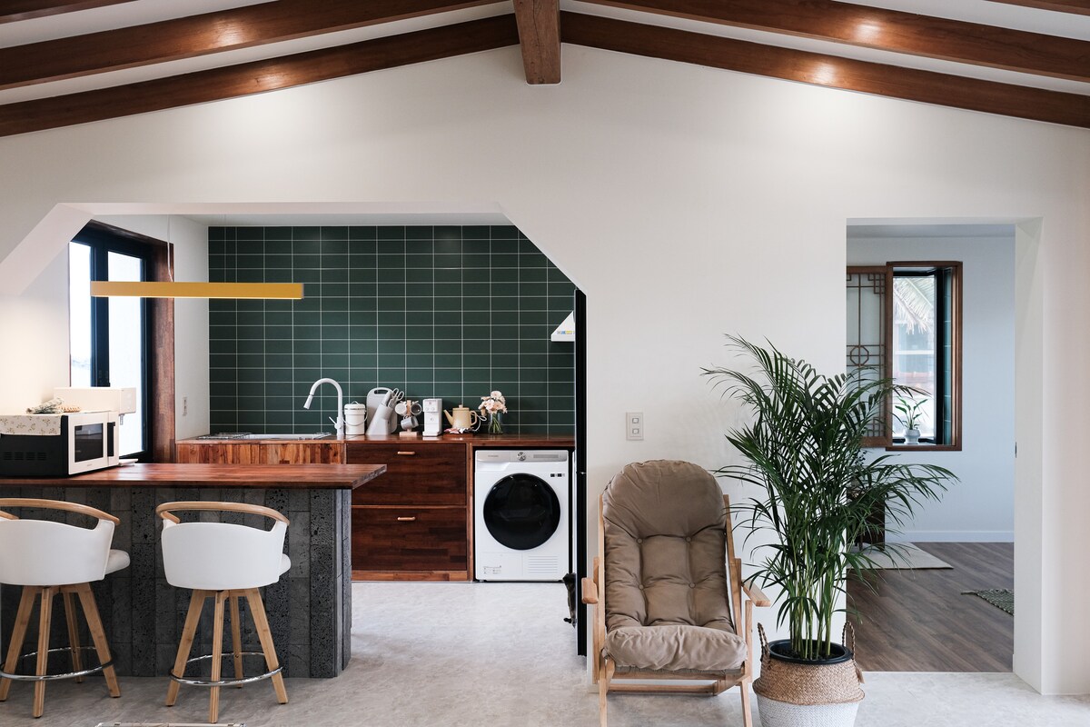 🏡 為您介紹 Aewol 309 View Stay。 「Aewol 309 View Stay」位於Aewol Yusooam-ri,是濟州居民最想住的第一個街區,是一棟獨棟房屋,位於309公尺的高度,天空和大海相遇。 在寬敞的空間裡創造難忘的回憶,足以讓3個家庭一起入住。 🏠 空間設定 * 4間房間、3間廁所、2間獨立廚房 *適合家庭入住:寬敞的客廳,最多可容納14人 *療癒點:陽光充足的日光房,與帶有淡淡白雪松香氣的客廳相連 *感性空間:一樓的海景露臺和獨立套房 🌅查看餐廳積分 180度全景:從日光房和露臺,您可以欣賞日出從漢拏山山頂升起到紅色日落。 ⭐三樓的浪漫閣樓 這裡有一個天花板窗戶,您可以直接看到夜空,因此您可以與孩子一起尋找星座,度過夢幻時光。 120英寸大螢幕為全家人提供獨特的體驗,讓大家一起觀賞電影。