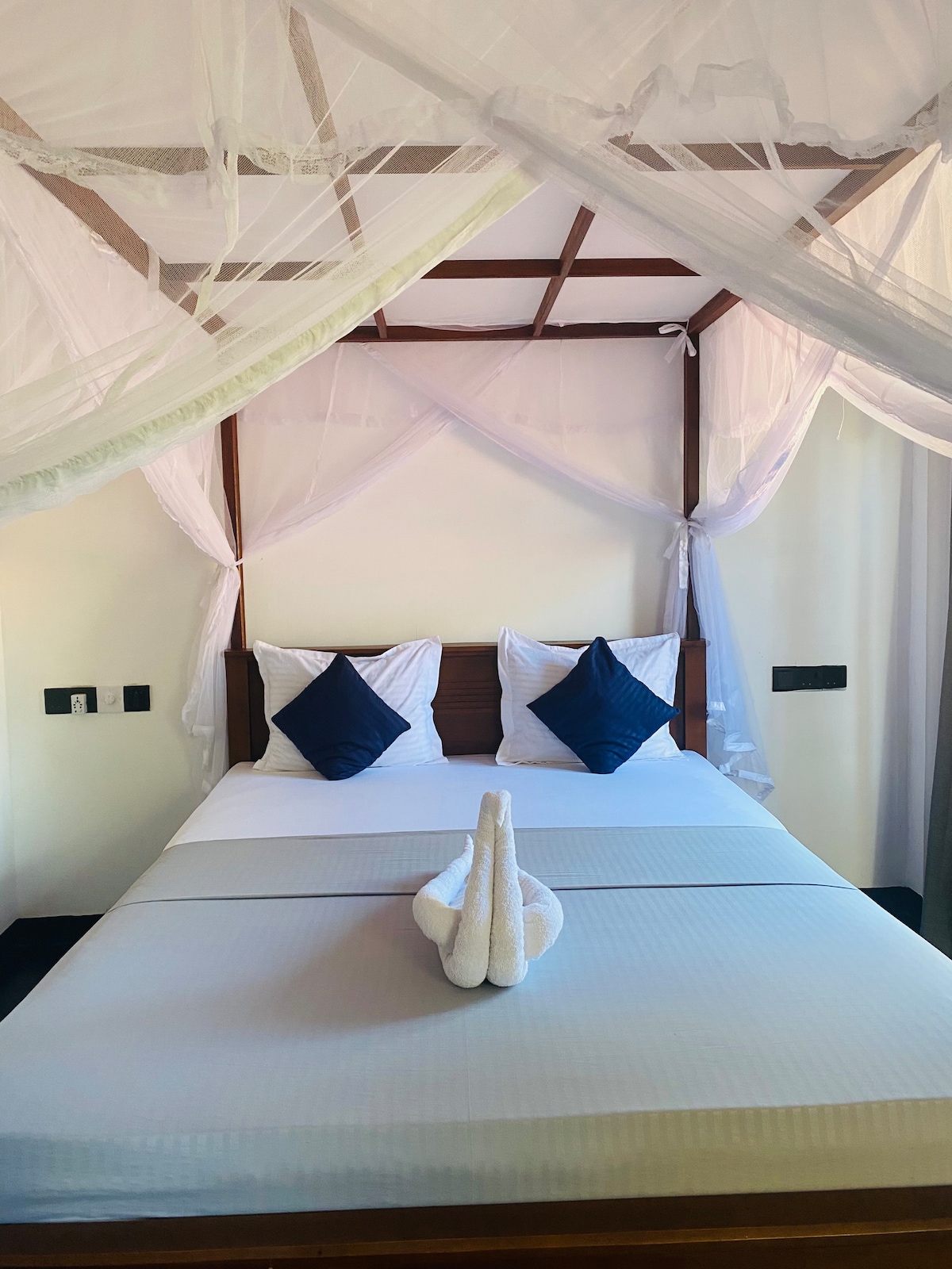 Take a break and unwind at this peaceful beachfront guesthouse in Tangalle,designed especially for couples and travelers seeking a calm,budjet friendly escape by the sea.Located directly in front of the beach,our guesthouse offers sunset views,fresh ocean air,and the soothing sound of waves throughout the day and night. For guest safety,security cameras are installed only in outdoor common areas such as entrance and exterior spaces.