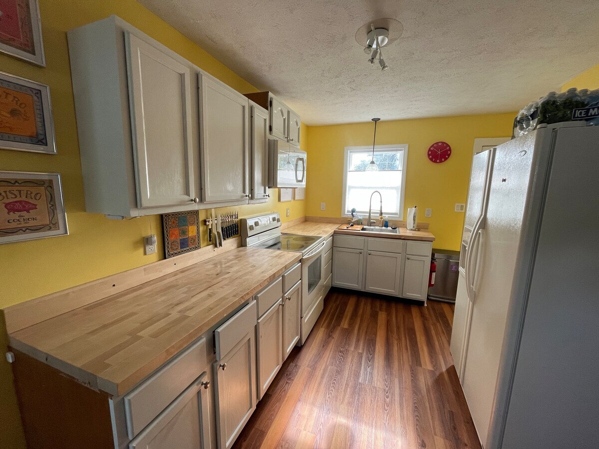 在距離大公園2英裏的新裝修牧場享受家庭時光。 步行即可抵達Westfield市中心。 設備齊全的廚房、新電器、智慧電視、寬敞的客廳、Lovesac組合式沙發、豪華浴室、兒童房配樂高桌和遊戲、嬰兒遊戲床。 每間臥室都有遮光窗簾。 有圍欄的後院。 步行即可抵達Asa Bales公園遊樂場、水上公園2.5英裏,距離Quaker水上樂園2.5英裏。2毫升卵石溪高爾夫球場 歡迎寵物 長期住宿的文字